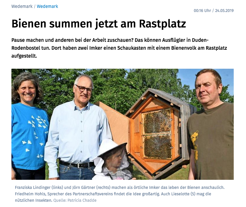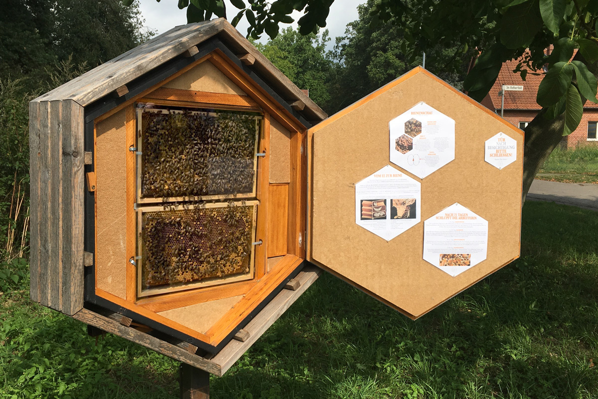 In Zeiten der zunehmenden Naturentfremdung ist es für uns elementar, den Menschen die Bedeutung und Wichtigkeit der Biene zu vermitteln. Mit unserer mobilen Bienenschau können wir einen hautnahen Einblick in das Bienenreich geben.