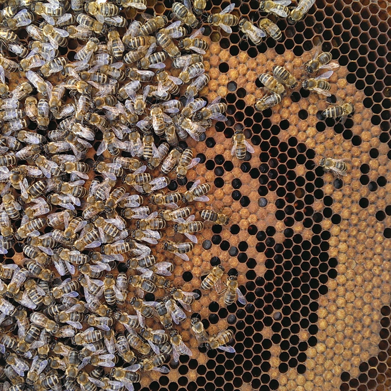 Brutzellen für den Nachwuchs der Arbeiterinnen. Nach etwa drei Tagen kriecht aus dem Ei eine kleine Larve. Diese wird von den Arbeitsbienen sofort mit einem vorgefertigten Brei gefüttert. Die Larve häutet sich fast täglich. Anfangs liegt die Bienenmarde gekrümmt am Grund der Wabenzelle. Mit dem Wachstum der Larve wird aus der anfänglichen Rundmarde eine Streckmarde, sie füllt dann in gestrecktem Zustand fast die ganze Zelle aus. Am Ende des Larvenstadiums bedecken die Ammenbienen die Wabenzellen mit Wachs.